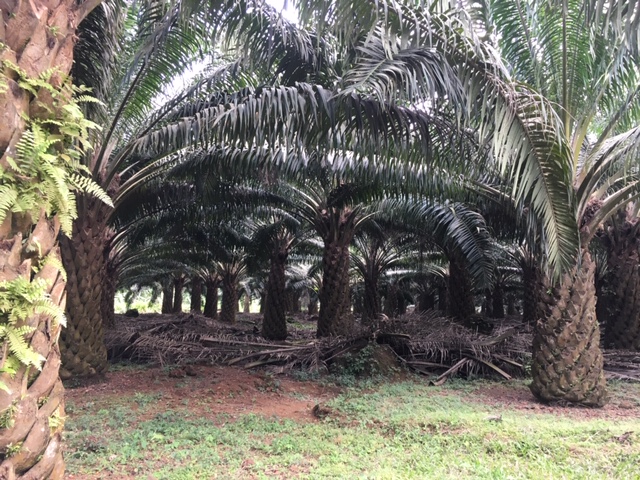 Alguns quilômetros depois avistei uma grande lavoura de palma africana. Desta planta se extrai nosso famoso azeite de dendê. Na porteira de entrada pude ver o selo europeu de produtos orgânicos. Entrei… não resisti… mas, sendo feriado, encontrei apenas um trabalhador, que não soube me contar muito. Mas vi a fábrica para extração do óleo. Certamente será exportado para Europa, espero que os ganhos desta iniciativa cheguem minimamente aos trabalhadores. Infelizmente as normas da agricultura orgânica não são suficientes para nos dar esta certeza.